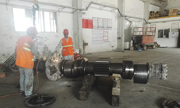 下面是四川渠县华新水泥厂大型减速机维修工程部分施工作业图。